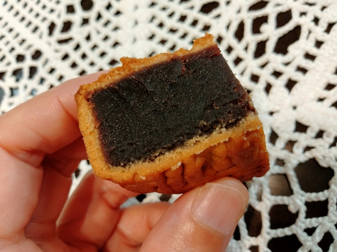 そして最後にあずき餡の月餅。見た目とテキスチャーは普通にこし餡。オーソドックスなあずき餡と思いきや、砂糖漬けのバラが練り込まれている、高貴な香りがほんのり漂う餡です。うん。うまい。バラ味のお菓子って、たまに香水食べているみたいで嫌な時あるじゃないですか。これはそうじゃない。十二分に食べ物らしいのに、それでいてバラの香り。